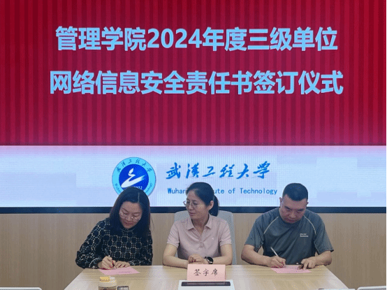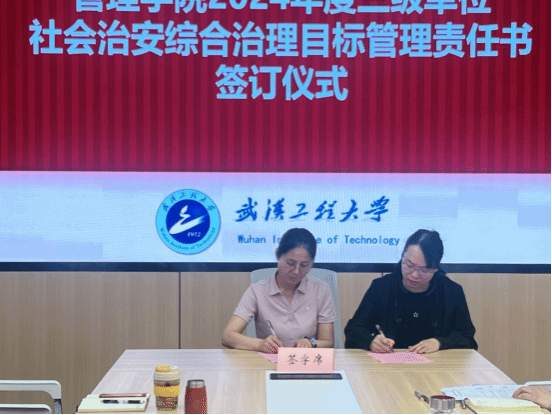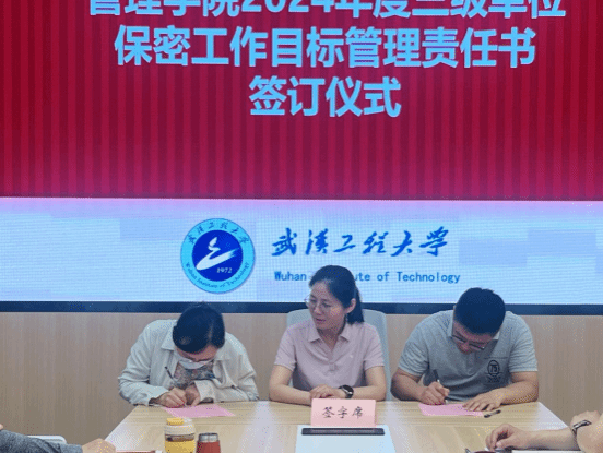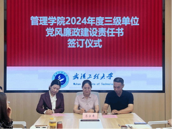 左辉代表学院与各三级单位负责人签订了党风廉政建设责任书、社会治安综合治理目标管理责任书、网络信息安全责任书和保密工作目标管理责任书。