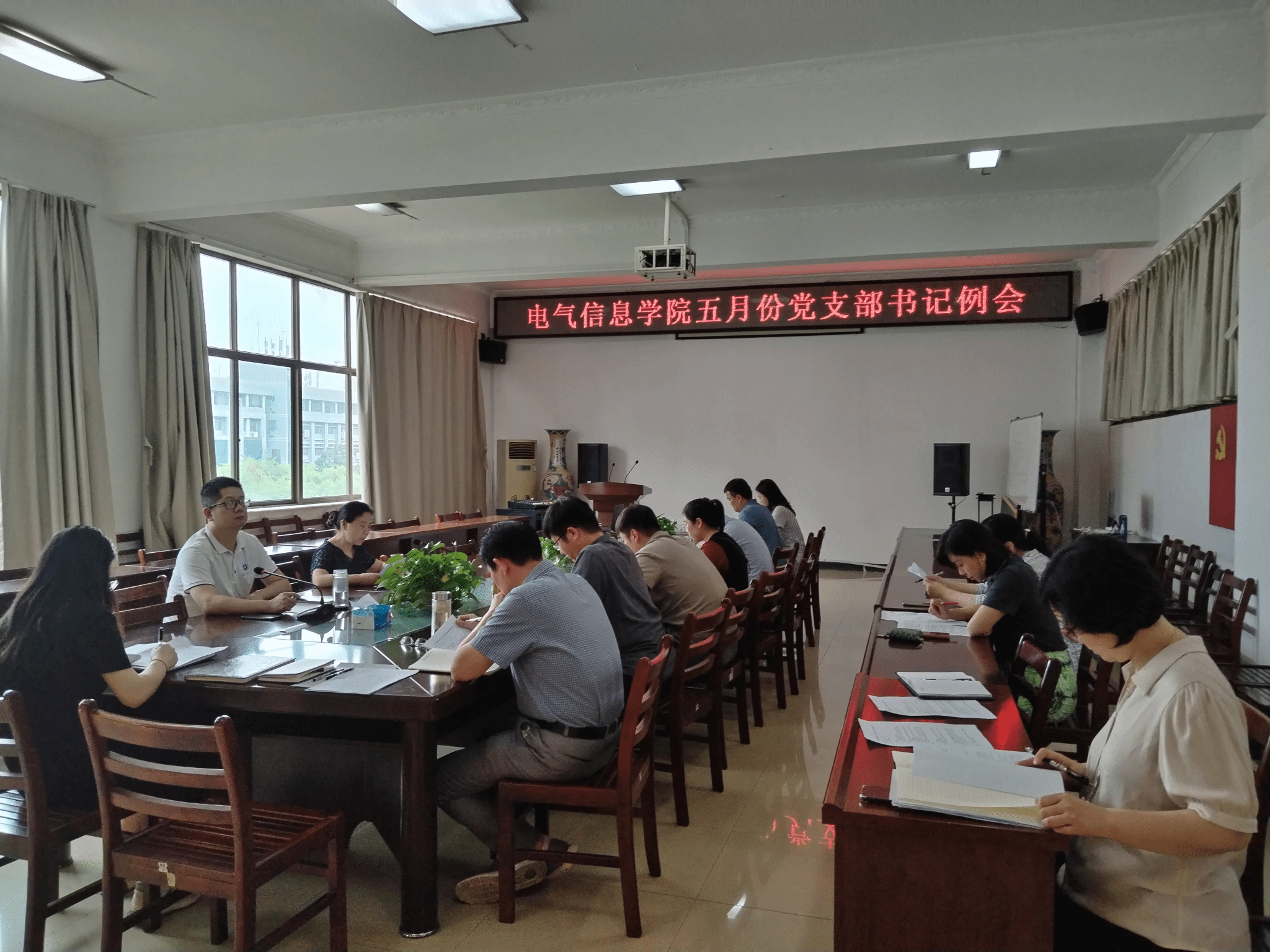 本网讯(通讯员 黄光亮)5月21日下午,电气信息学院在会议室召开五月党支部书记例会暨支部书记培训会,学院党委书记谢春晖主持会议,全体党支部书记参会。