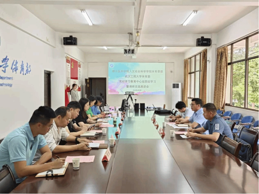 本网讯(通讯员 吴东)6月5日,湖北医药学院体育部主任朱红军、副主任李承龙、教学秘书王锋斌一行到贝博体育部联组开展党纪学习教育专题学习暨调研交流活动。体育部领导班子成员,及相关老师参加会议。体育部直属党支部书记、主任万莉莉主持会议。