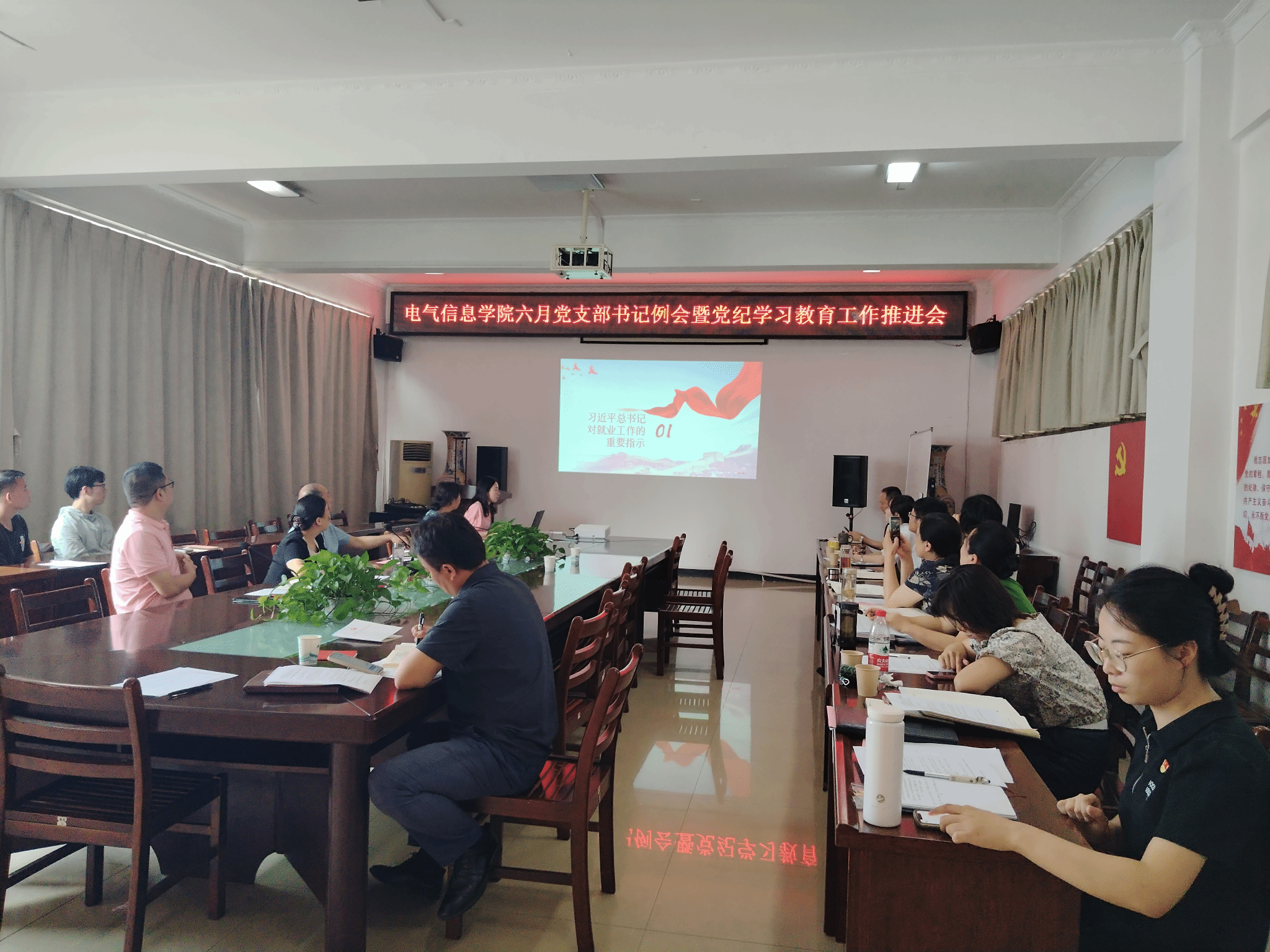 本网讯(通讯员 黄光亮)6月14日上午,电气信息学院在会议室召开六月党支部书记例会暨党纪学习教育工作推进会,学院党委书记谢春晖主持会议,学院组织员、全体党支部书记参加会议。