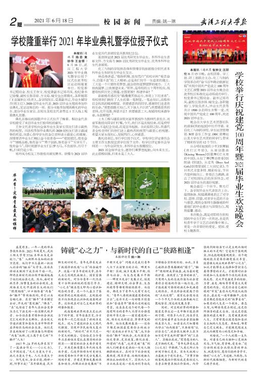 刘瑜说,“一个人就像一支队伍,对着自己的头脑和心灵招兵买马,不气馁,有召唤,爱自由。”这句话特别适合此情此景的毕业生,祝愿你们。愿你们能终身学习,铸就“心之力”,不逃避,不抱怨,与新时代狭路相逢,与新时代的自己携手共进。