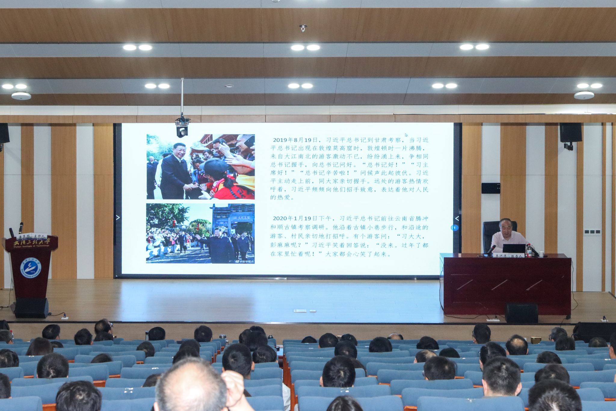 本网讯(通讯员 周雯琪 谭明武)4月11日上午,学校在教育教学综合楼102报告厅举行深入贯彻中央八项规定精神学习教育读书班专家辅导报告会。省委党史研究室一级巡视员王洲洋同志应邀作辅导报告。省委党史研究室机关党委专职副书记赵向阳同志陪同参会。校党委副书记、校长张彦铎,校党委副书记李志旭,校党委常委、副校长朱青林、喻发全、马小龙、吴云韬,校党委常委、宣传部部长韩高军出席报告会。报告会由校党委副书记(正厅长级)潘慧明主持。