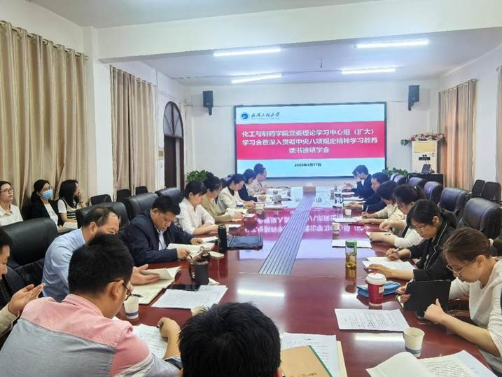 党委副书记周丹传达学习了中共中央办公厅《关于在全党开展深入贯彻中央八项规定精神学习教育的通知》;副院长余响林传达学习了湖北省委书记王忠林在省委常委会深入贯彻中央八项规定精神学习教育读书班开班式上的讲话精神;党委委员龙思会领学中央列出违反八项规定清单80条部分内容,并作主题交流发言。